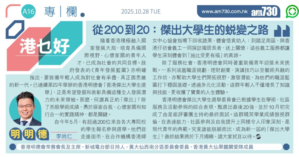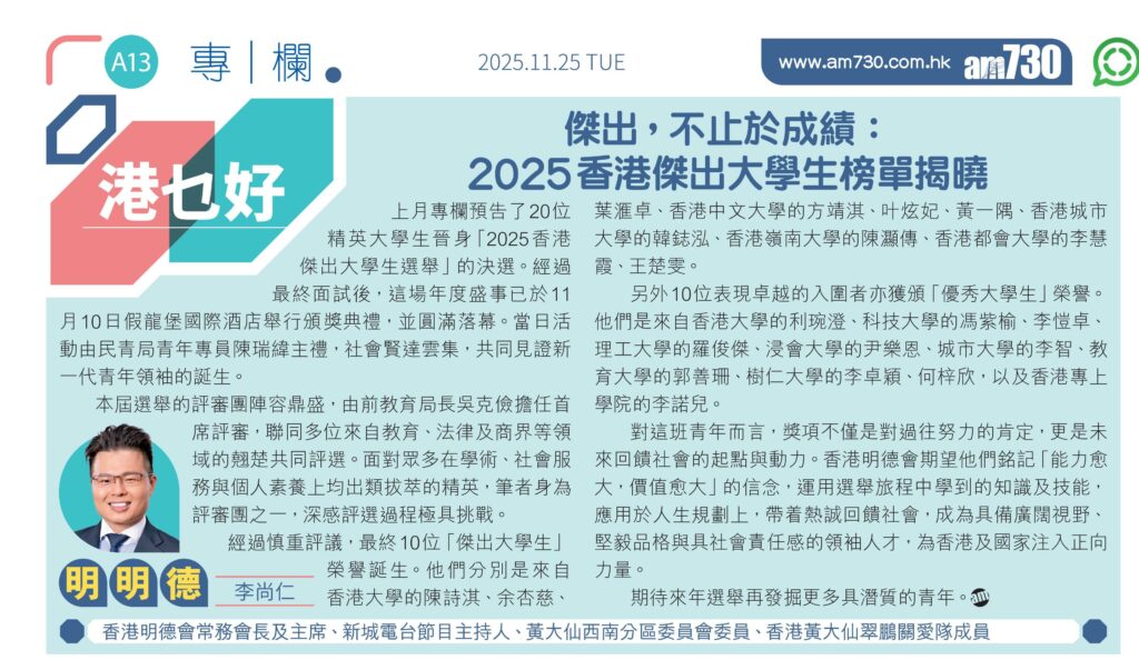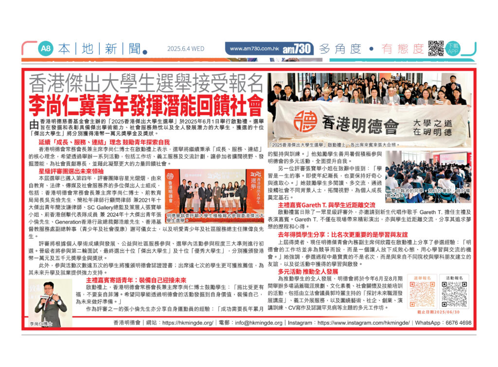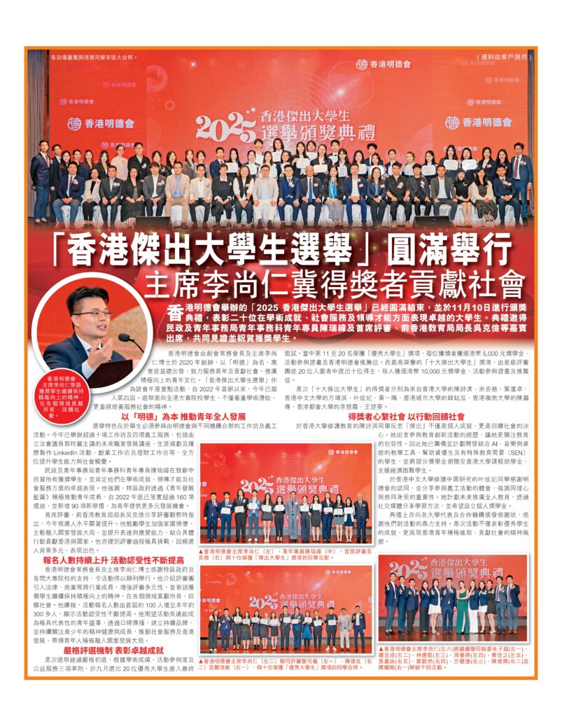 香港明德會舉辦的「2024 香港傑出大學生選舉」已圓滿落幕